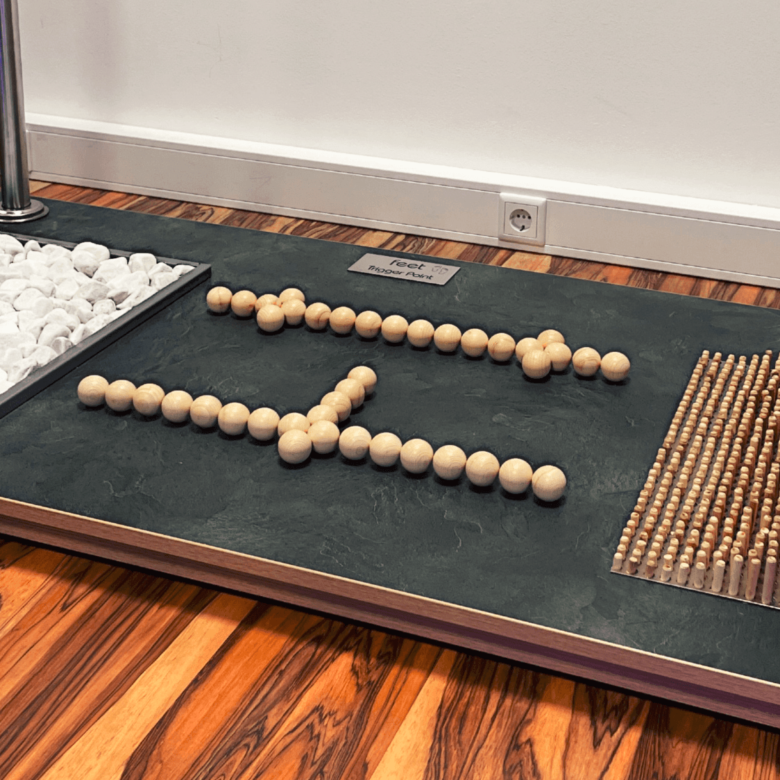 Mit gezieltem Druck auf bestimmte Punkte an den Fußsohlen aktiviert unser Feet Triggerpoint den gesamten Körper. Verspannungen werden gelöst, die Durchblutung wird angeregt und eine spürbare Entspannung tritt ein - ideal zur Aktivierung vor oder zur Regeneration nach dem Training.
